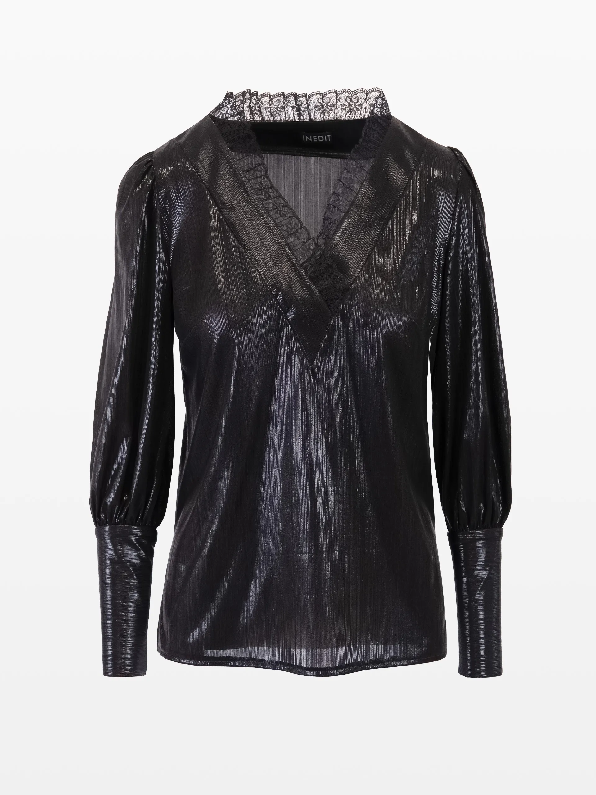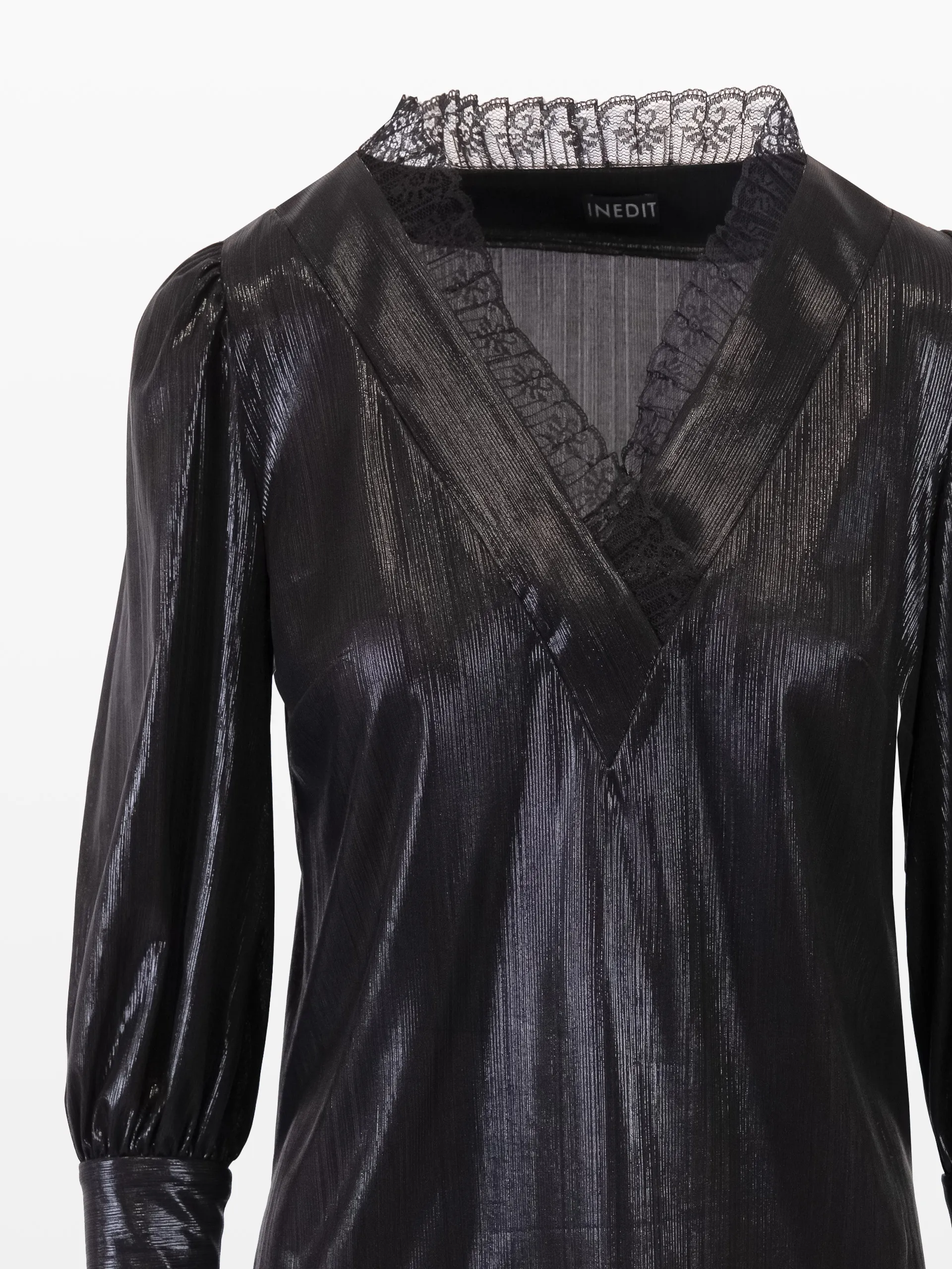 Bluză din lurex culoarea negră, cu dantelă.