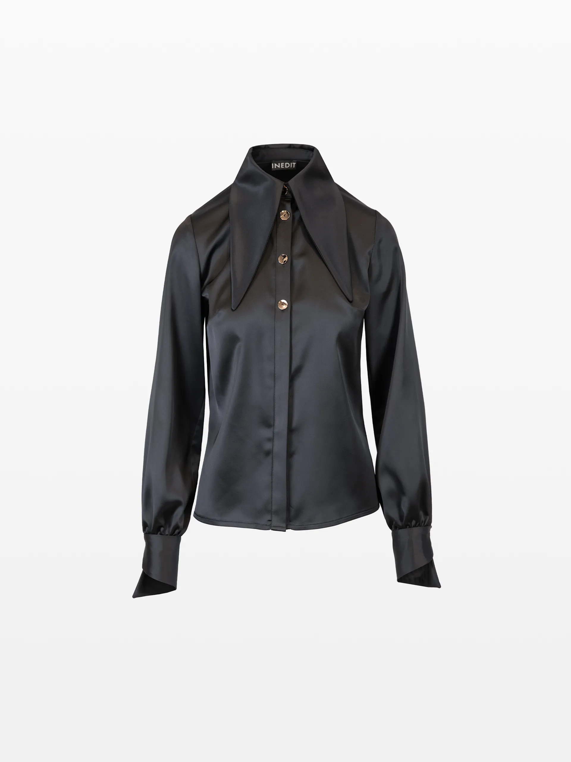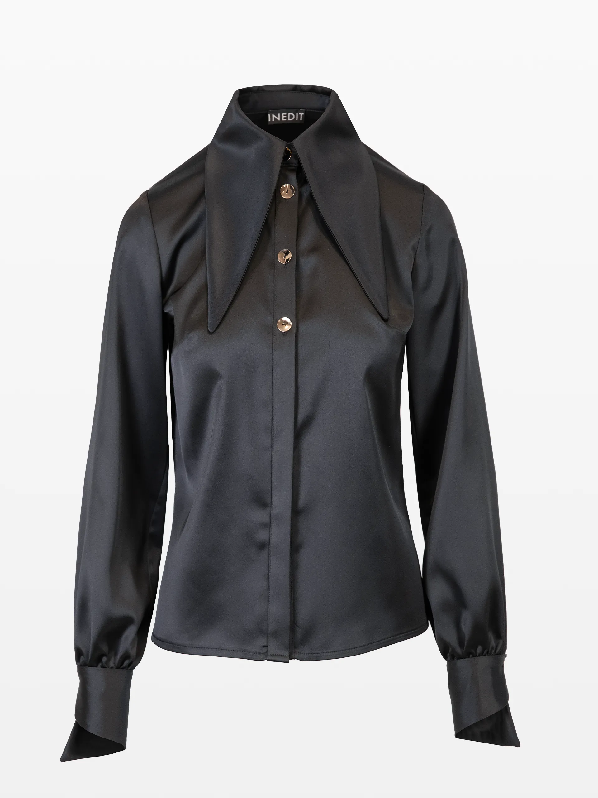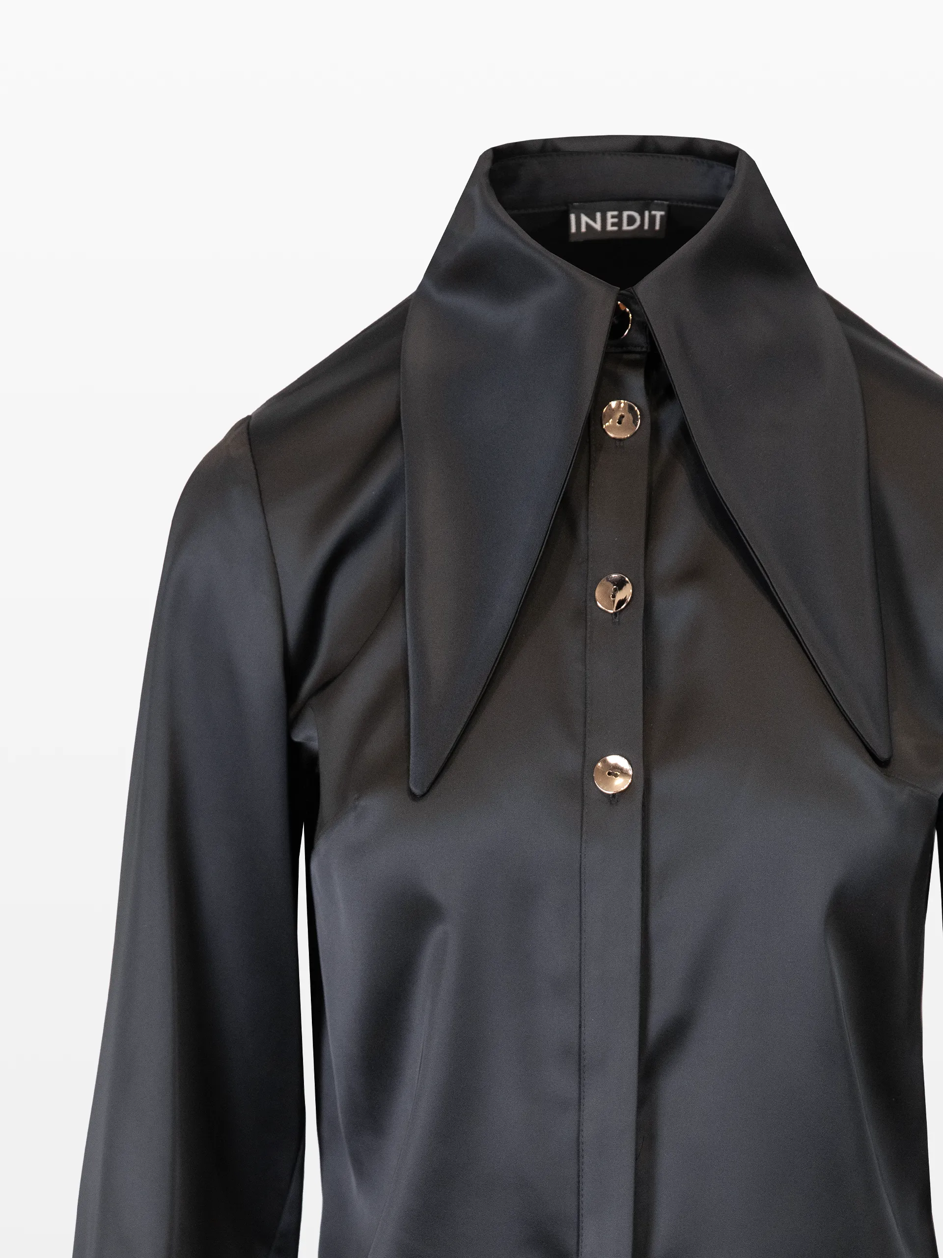 Cămașă cu guler supradimensionat, culoarea neagră.