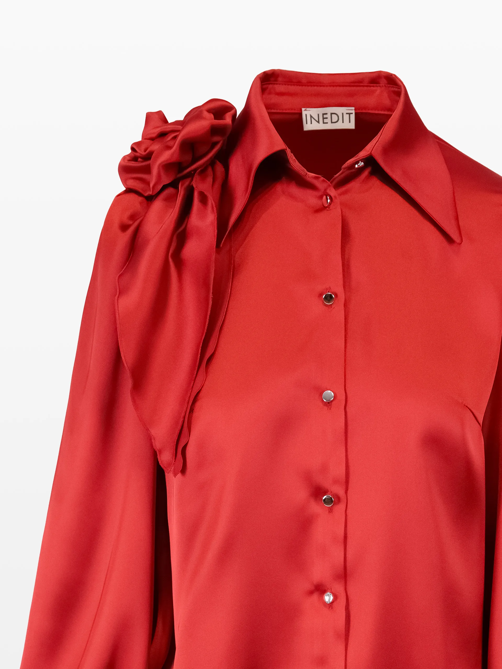 Camașă cu trandafir pe umăr, culoarea roșie.