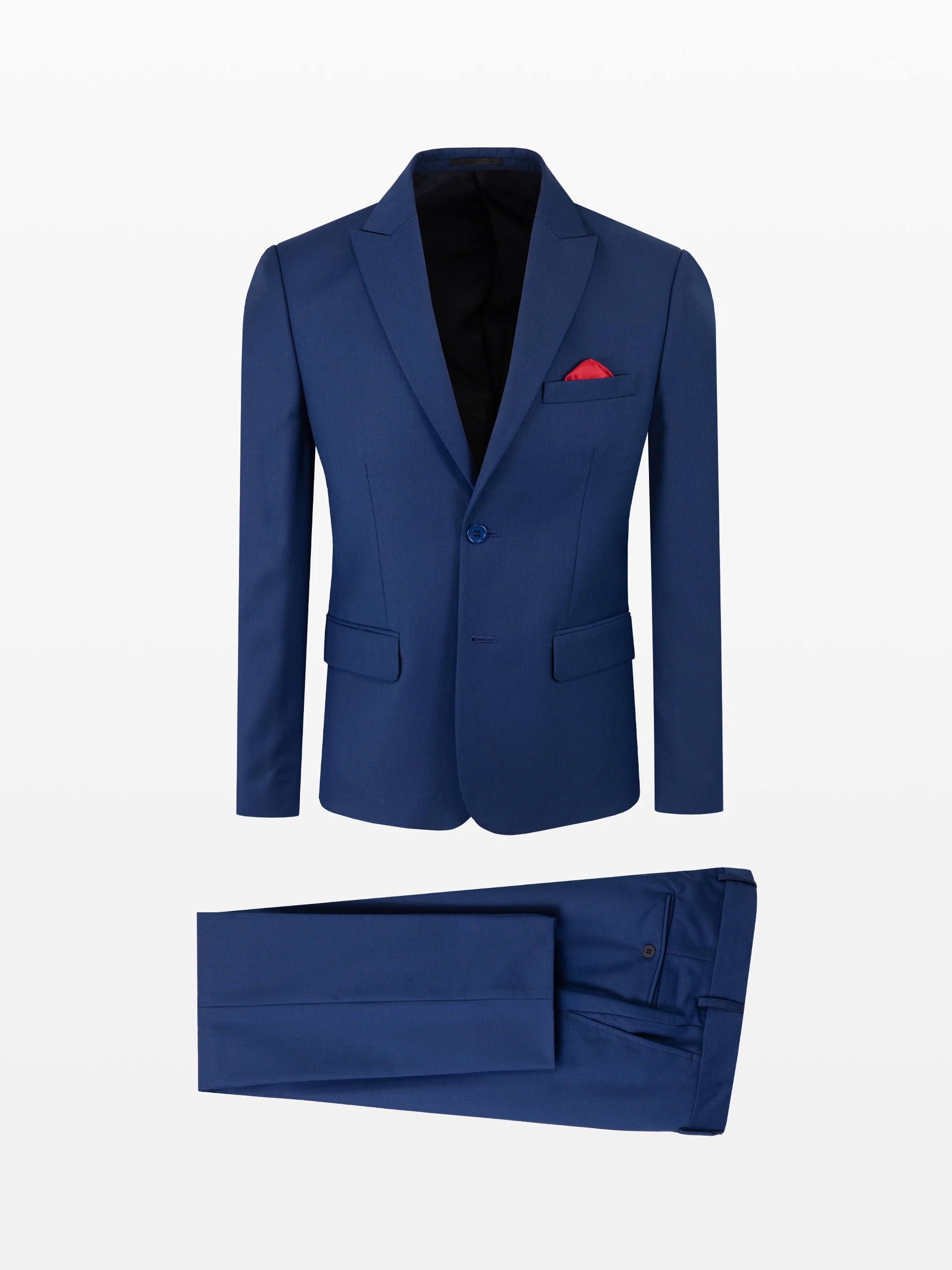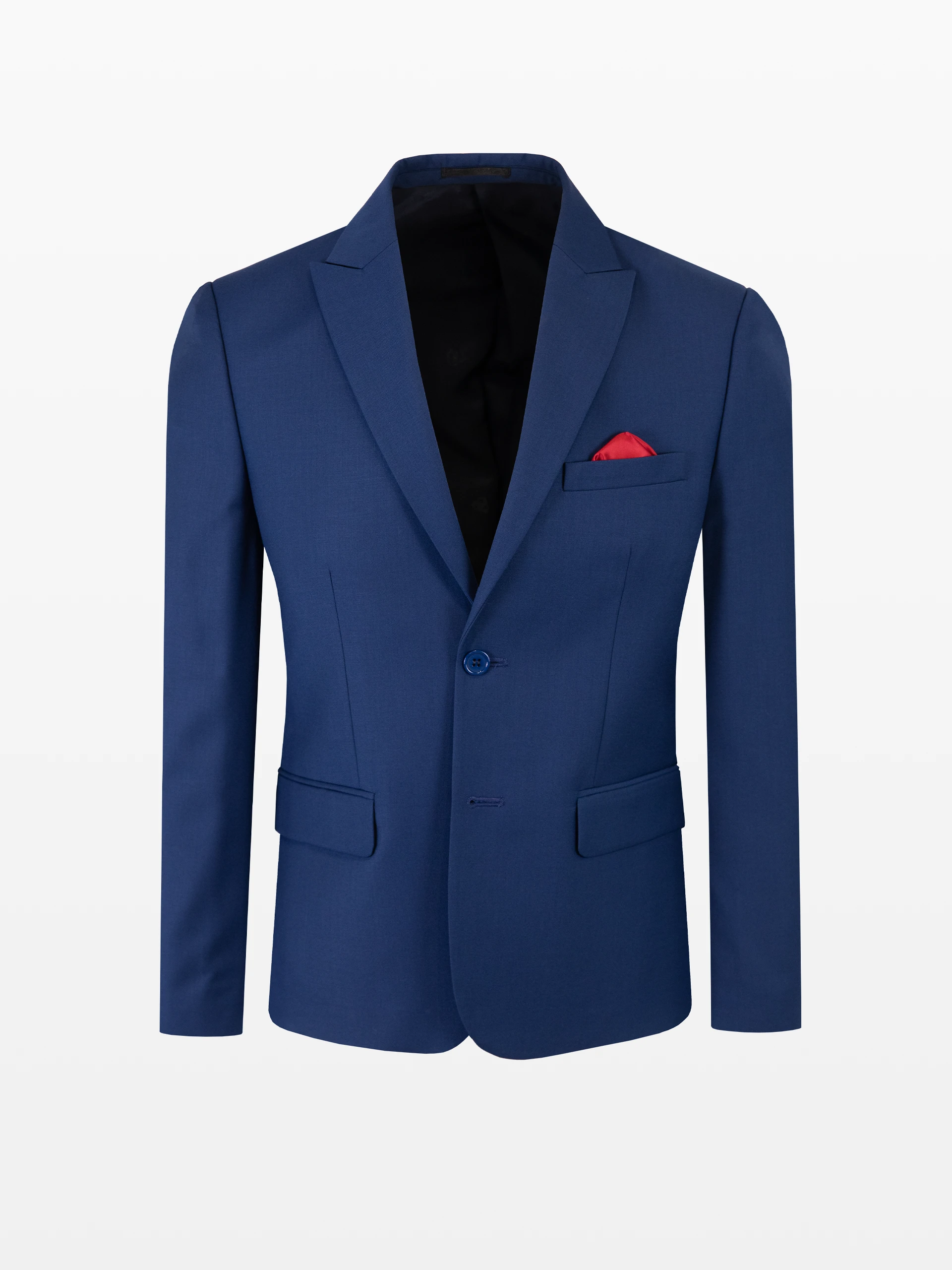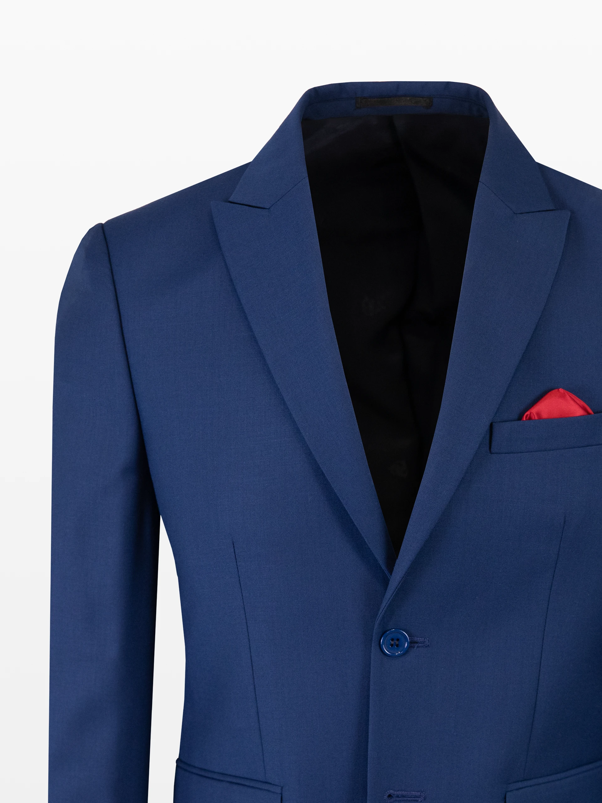 Sacou și pantaloni din stofă uni, culoarea albastru închis
