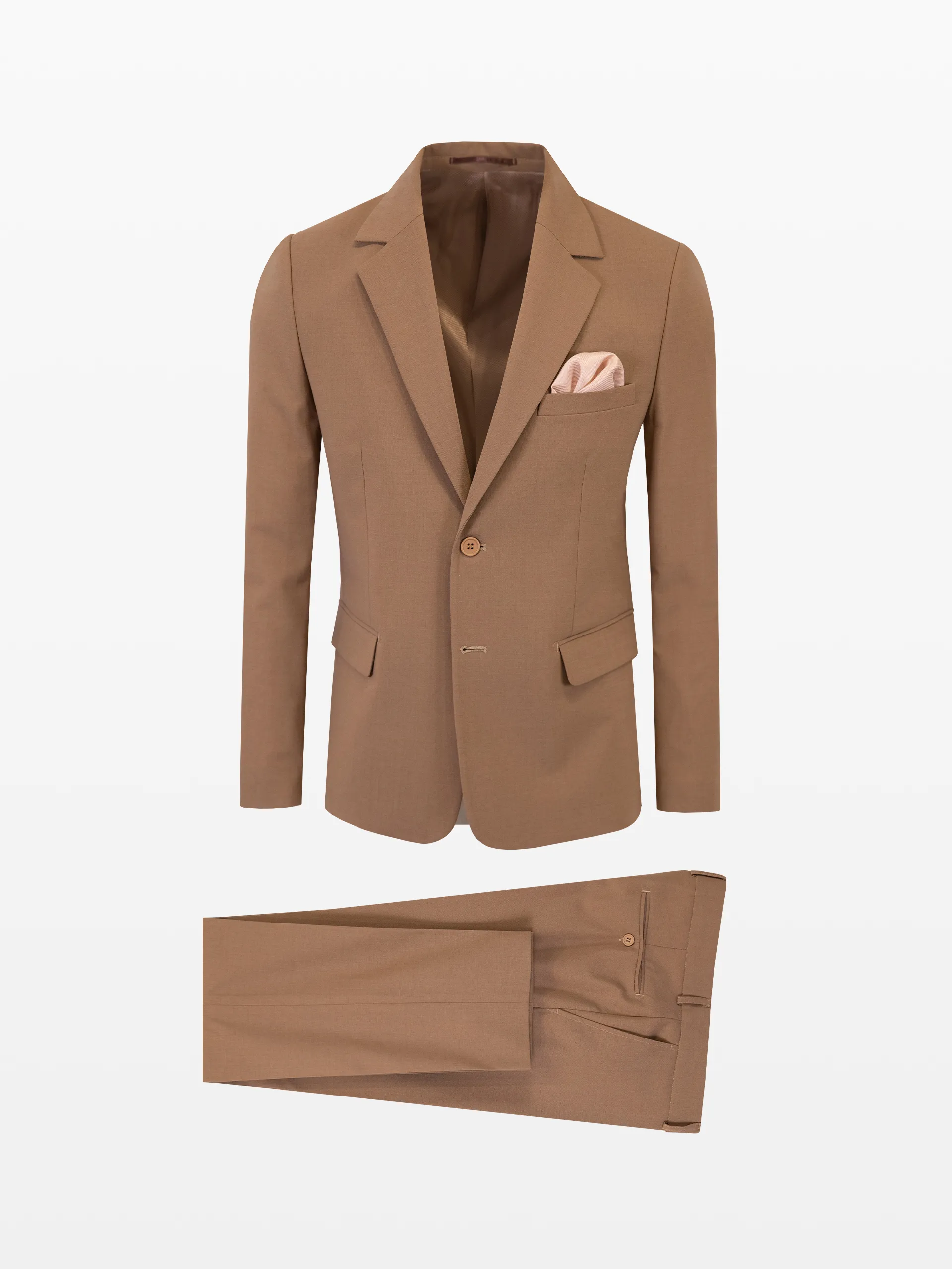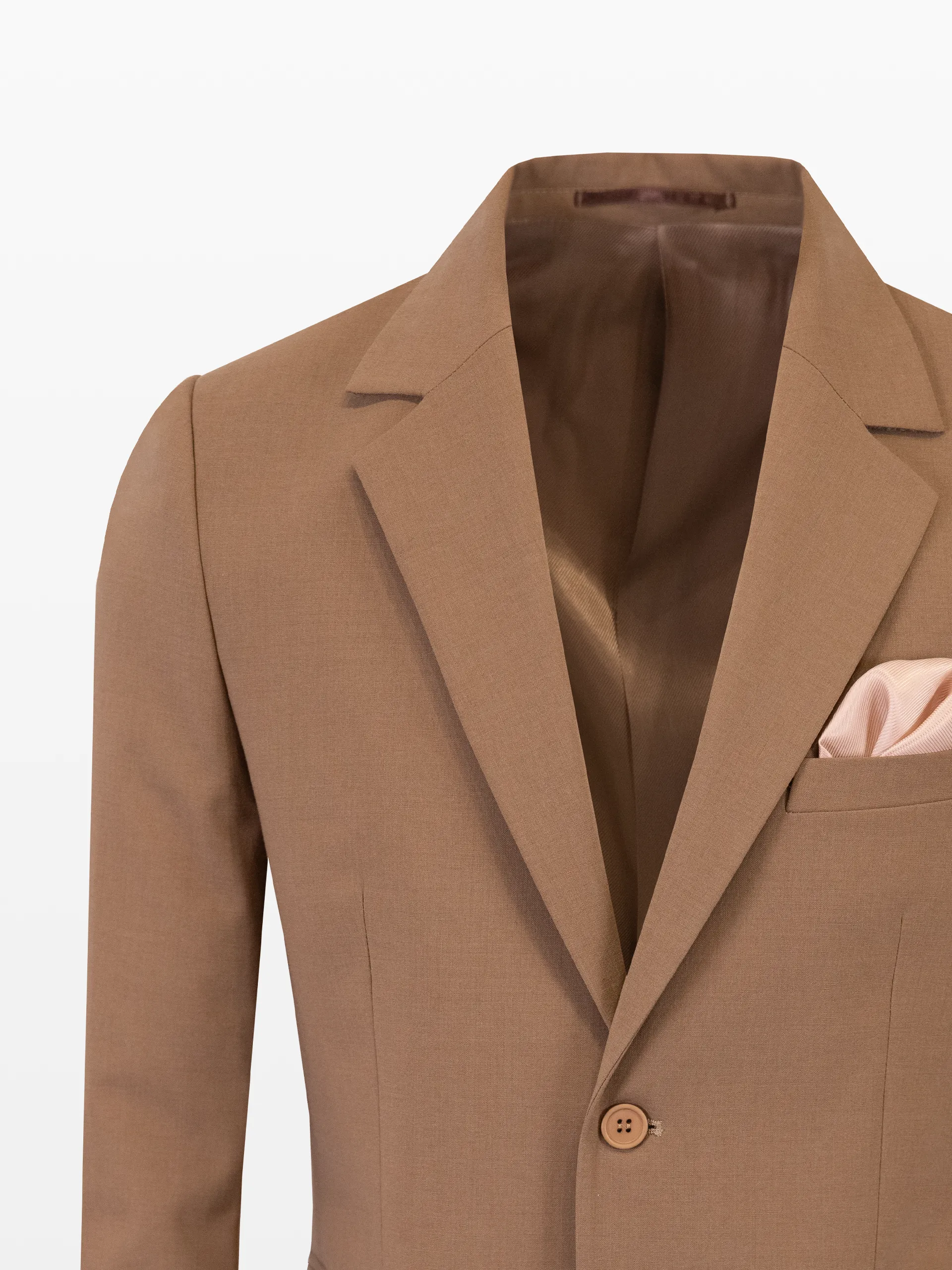 Sacou și pantaloni din stofă texturată, culoarea cafeniu.