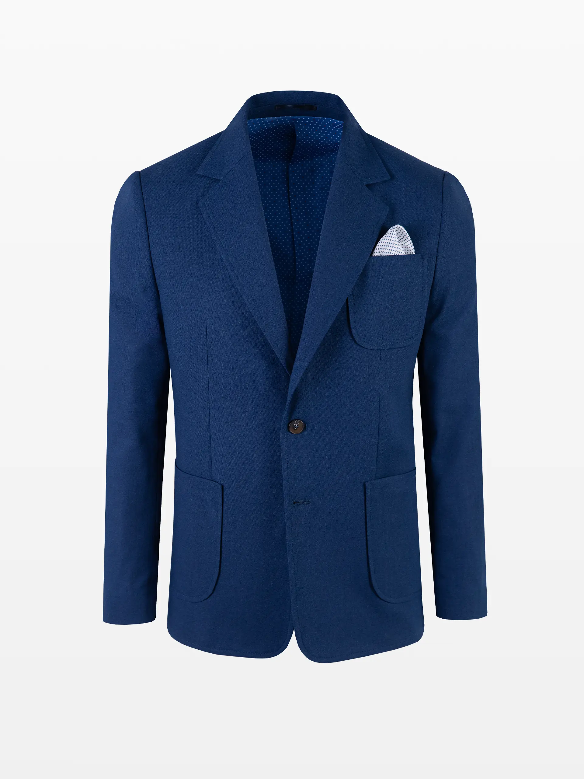 Sacou cu buzunare aplicate și pantaloni din stofă texturată, culoarea bleumarin.