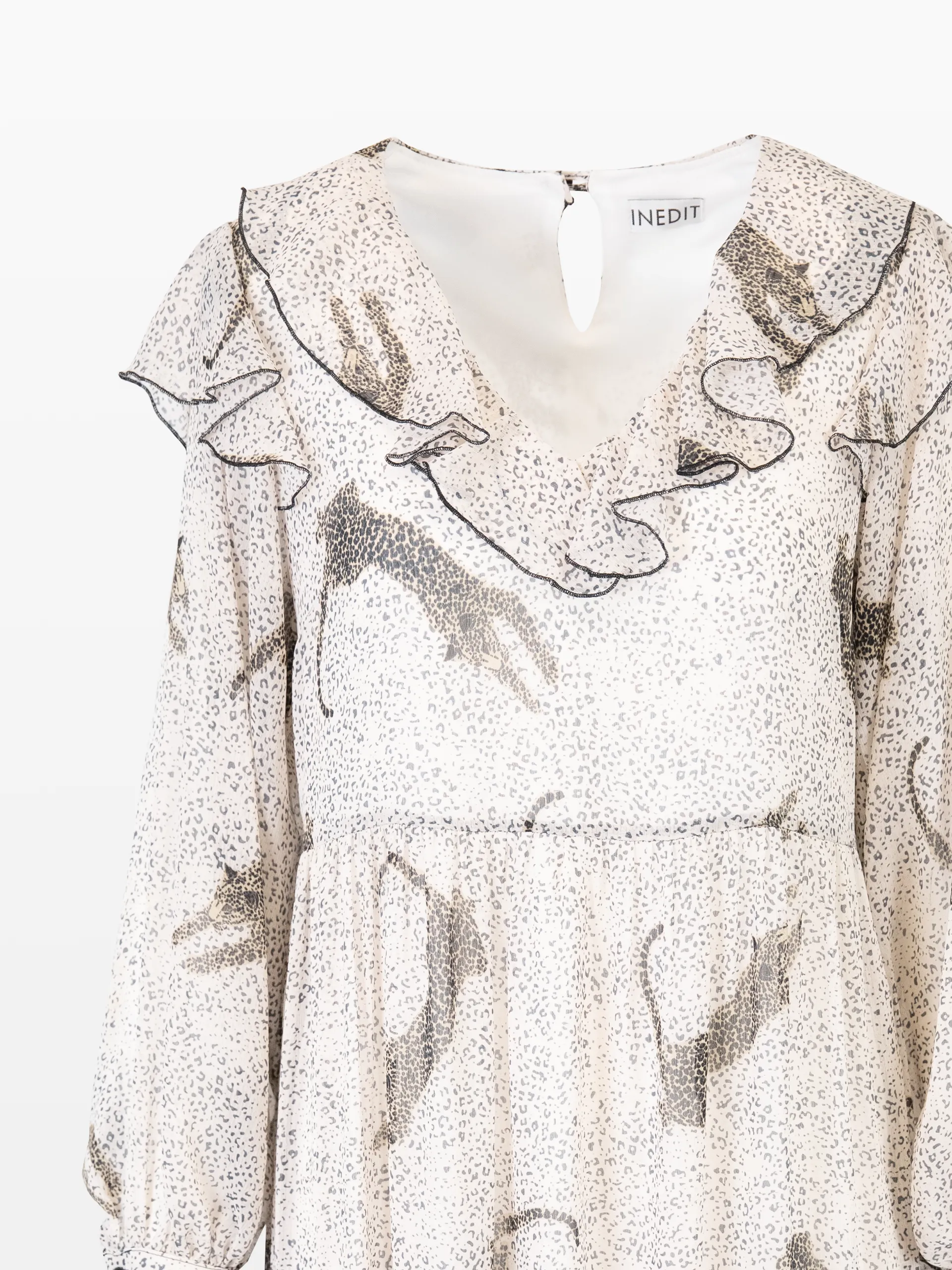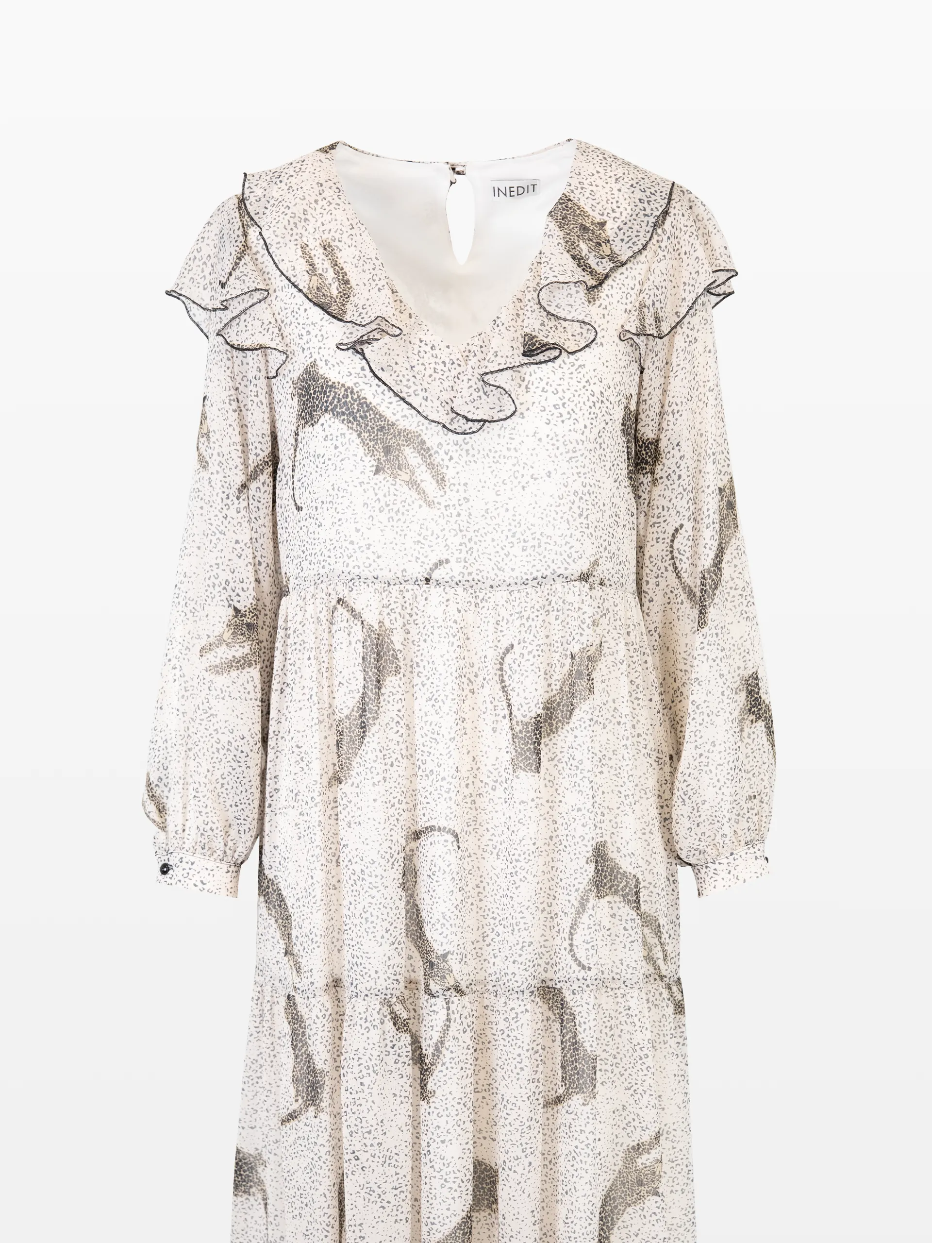 Rochie lungă albă, cu print leopard.